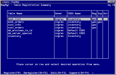 • Create internal Ingres Replicator tables and procedures that support replication of a database table