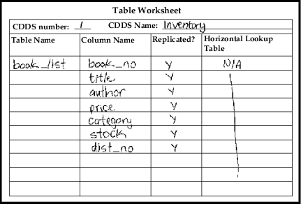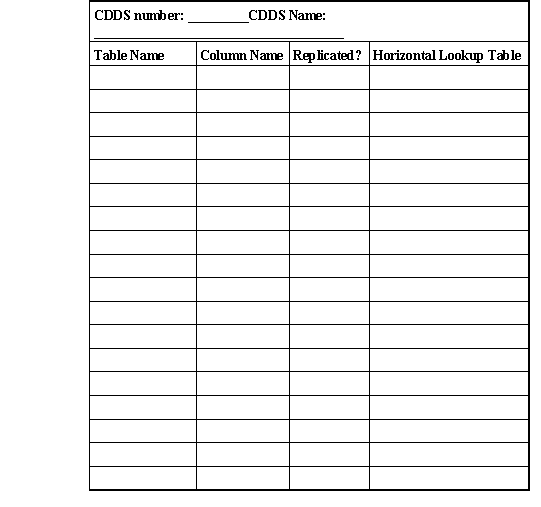 You must complete this worksheet if you are including vertical or horizontal partitioning in your CDDS. Vertical partitioning refers to replicating a subset of a table’s columns. Horizontal partitioning refers to replicating a subset of a table’s rows based on values in a particular column.