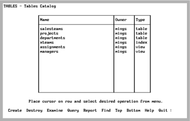 For a full explanation of the Tables utility, see Forms-based Application Development Tools User Guide.