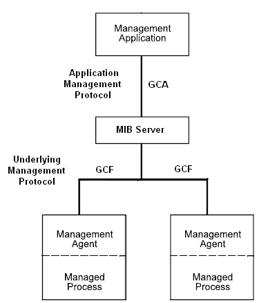 The GCA allows the Management Application to either connect directly to a MIB Server or indirectly to a remote MIB Server using a GCC process.