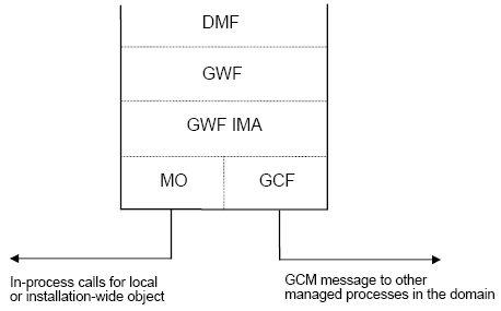 For objects internal to the DBMS Server, the MIB Server reads and writes objects directly through MO. Objects in other processes, for example a Communications Server, are handled using the GCF message protocol.