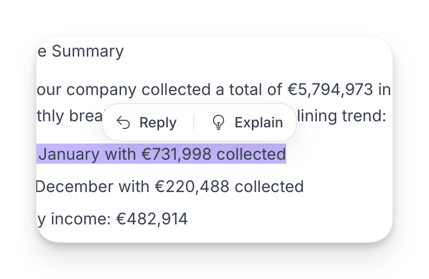 - Highlight any text in a response to ask a follow-up question about that specific part