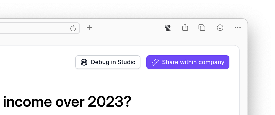 If a result looks unexpected, the Debug in Studio button opens the full execution trace for that task — showing exactly which queries were run and how the answer was derived. This is only available to Admins.