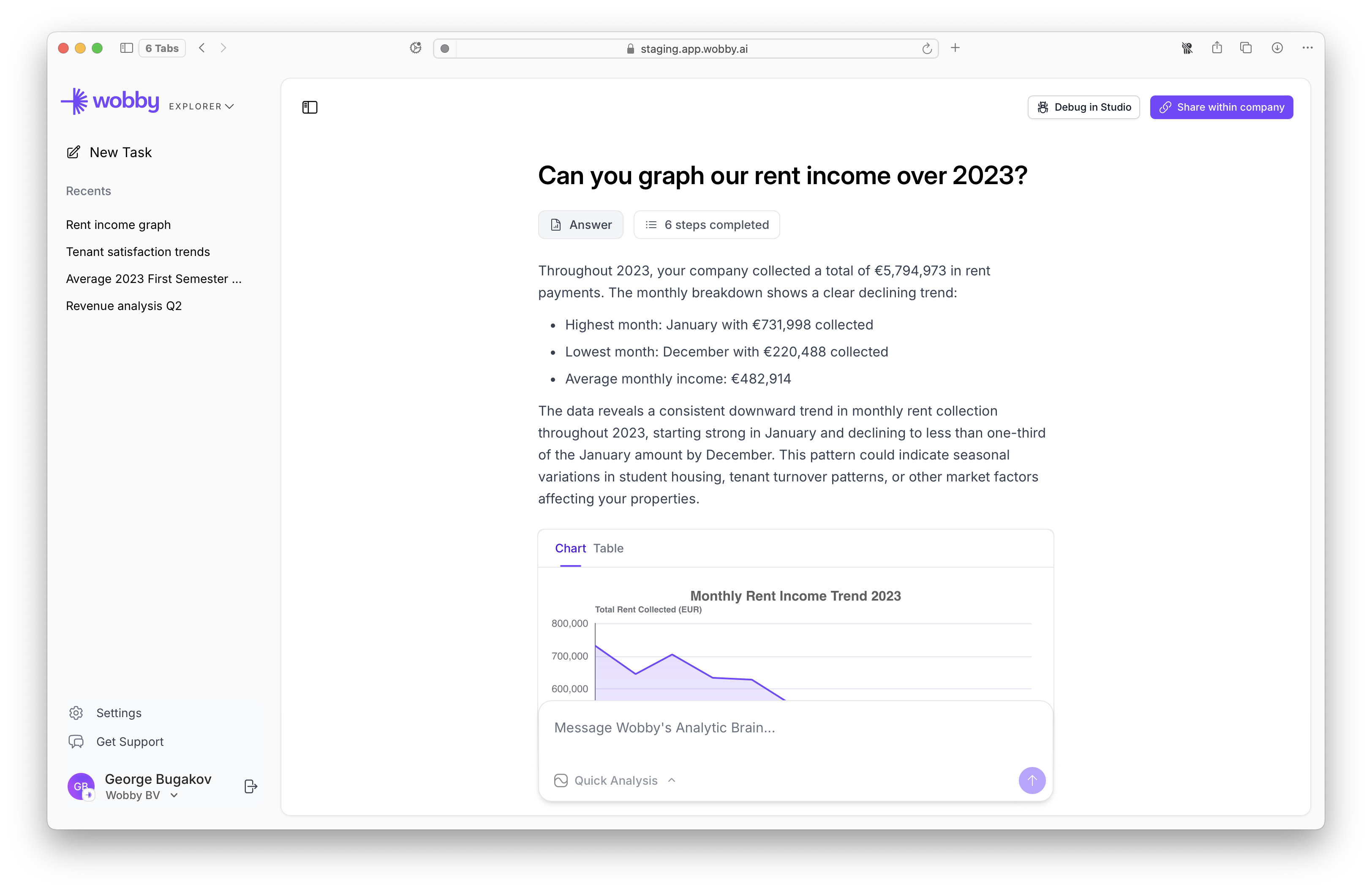 Actian AI Analyst Explorer is the conversational interface where business users interact with AI Analysts. Ask questions in natural language and get answers as summaries, tables, and visualisations — all backed by live queries against your data warehouse.