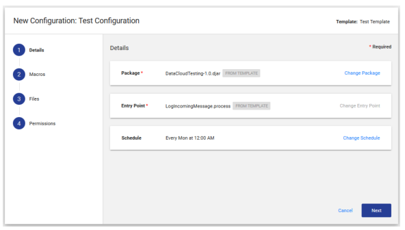 Configurations inherit values from the template so you can simply execute the configuration or choose to override specific instructions, making a configuration fully customizable. Using templates makes managing multiple configurations simpler.