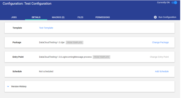 Your newly created Configuration is displayed.
