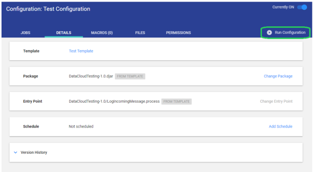 The integration is executed when you run the configuration. When completed, runtime metrics will be available for review.