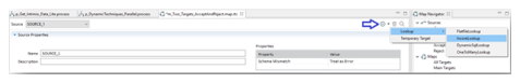 A good example of using temporary targets is for the lookup use case. When you need to enrich a row of data from one source with a few fields of data from a second source, you can quickly build the lookup functionality using a temporary target. The temporary target (temp table) provides a graphical user interface for drag-and-drop mapping, which reduces the amount of scripting required and generally make it easier to build the transformation map.