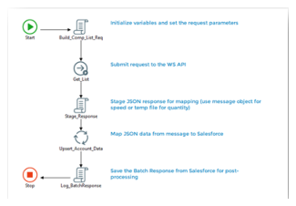 An example of using a REST interface with the invoker includes extracting data from a financial website such as Intrinio to update your Salesforce CRM data. In this case, you can design a process that uses the invoker to extract raw JSON data and pass that data to a map step that uses the JSON connector on the source and the Salesforce connector on the target.