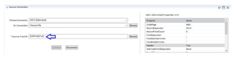The following image shows a map with two macros that represent the path and file name, which is used to establish the connection to a file.