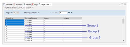 You can access the value of the count parameter and each instance using the Transformation object properties such as IterationCount and IterationNumber. The results of these target field mapping expressions is as shown in the following image.