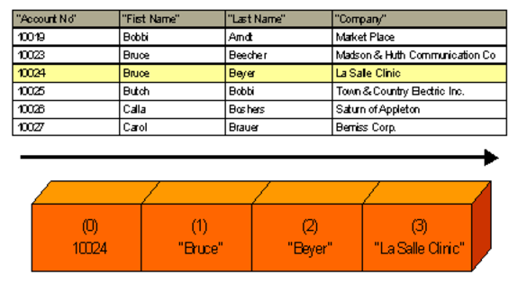 The array indexes can be combined with metadata expressions to assign values from a source record to elements in an array. The following example loads the first four fields of the file into a 1-dimension array: