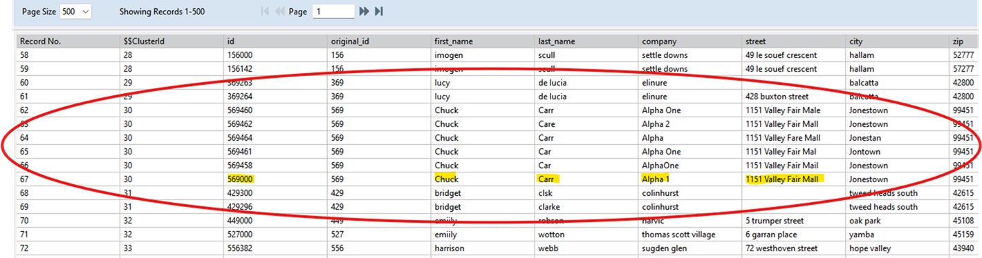 $$ClusterId | The unique ID that is assigned to each cluster. Using this, you can identify and understand how many clusters exist and how many records are in each cluster. The cluster IDs are not retained, so every time the profile is executed or the cluster file is generated, the order of the clusters and the associated IDs will change. |