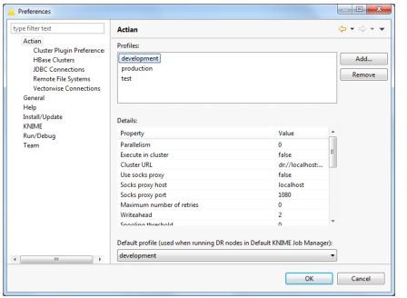 You can now use the Preferences dialog to edit the configuration values for the new profile. The following screen shot shows a profile with clustering enabled.