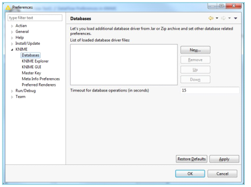 The Databases preference page allows you to register a JDBC driver with KNIME.
