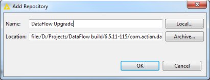 Repository location to upgrade DataFlow. Browse to the latest version of DataFlow saved in your local system and open it.