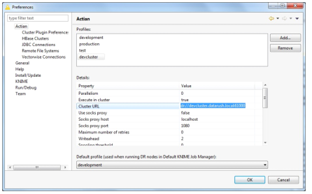 You can now use the Preferences dialog to edit the configuration values for the new profile. The following screen shot shows a profile with clustering enabled.
