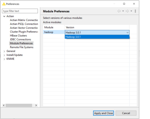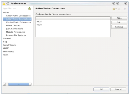 1. In KNIME window, go to File > Preferences > Actian > Actian Vector Connections.
