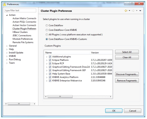 In the KNIME window that is opened by the File > Preferences command, you can select a combination of Actian settings to configure DataFlow behavior: