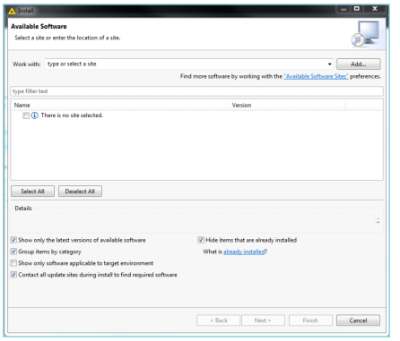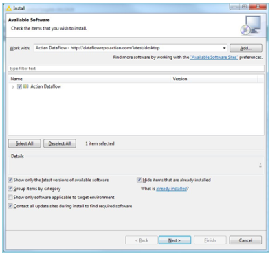 5. To select the extensions in the the Available Software dialog for the Actian DataFlow repository, select the repository option and click Next.