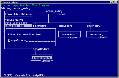 After you create a frame, you can change the text of the menu item that calls it. Vision changes the text on the parent frame and everywhere else it appears in the application.