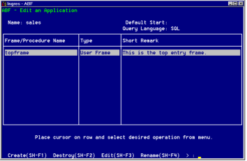 You have now completed the definition of Topframe. Choose End to return to the Edit an Application frame.