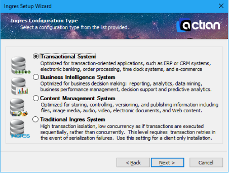 Parameter | Transactional | Business Intelligence | Content Management | Traditional |