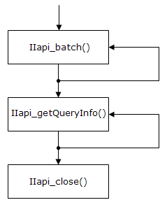 After the last statement in the batch is submitted, the statement execution results may be retrieved by calling IIapi_getQueryInfo(). In general, IIapi_getQueryInfo() should be called once for each query in the batch. The results for each query in the batch will be returned in the order the statements were submitted for execution: