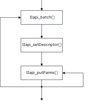 After all parameter values for a statement have been provided by calling IIapi_putParms(), the next batch statement may be submitted by calling IIapi_batch() or batch results retrieved by calling IIapi_getQueryInfo().