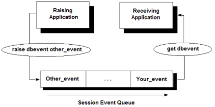 The RAISE DBEVENT statement can be issued from interactive or embedded SQL applications. When the RAISE DBEVENT statement is issued, the DBMS sends a database event message to all applications that are registered to receive event_name. If no applications are registered to receive a database event, raising the database event has no effect.