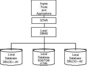 When a Ingres Star user requests data from TABLE1, the Star Server passes the request to the local DBMS, which gets the information from DBLOC_A1.