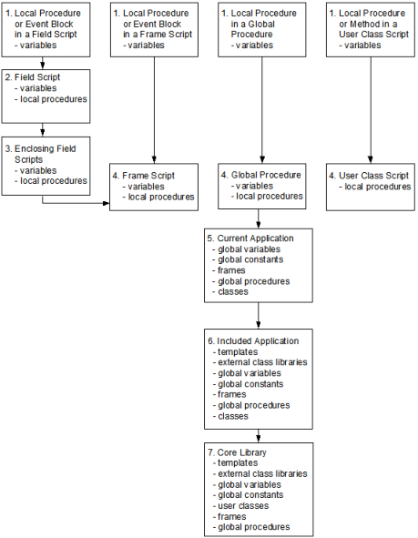 3. Enclosing field scripts (which are field scripts for fields containing the current field script's field)