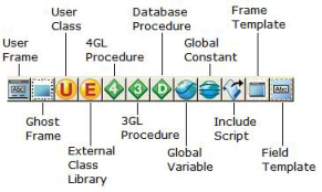 A user frame consists of a form that you design, a script whose code you write, and, sometimes, a menu that you create. This icon opens the Create User Frame dialog: