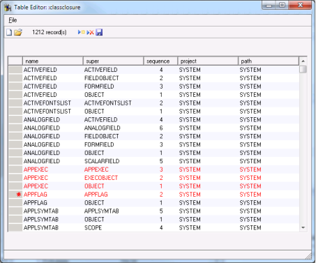 The frame is created and displayed in the Frame Editor. It contains a tablefield with columns for each of the database table columns. If the table is too wide, you can scroll the tablefield horizontally.