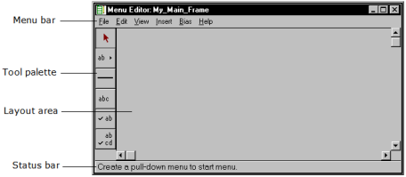 You access the Menu Editor from the Frame Editor. The following shows the Menu Editor interface: