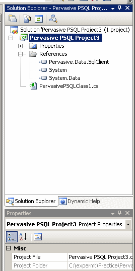 Click Add. The class for the Pervasive PSQL data provider is added to the project.