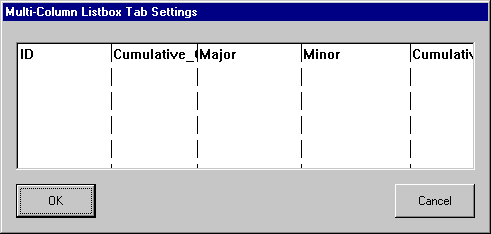 Still in the Property Pages, click on the ellipses next to the ColumnWidth combo box to open the Multi-Column Tab Settings window. The first field you selected is displayed.