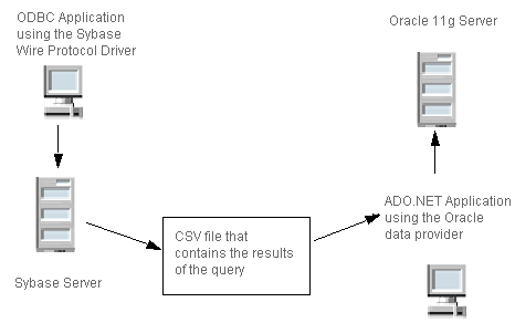 After exporting data from an Oracle database, you migrate the results to a PSQL database. Figure 4 shows an ODBC environment copying data to an ADO.NET database server.
