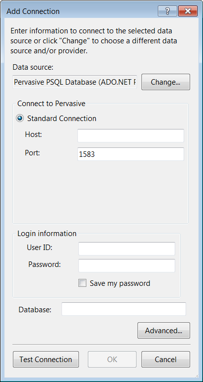 Password: Type a case-insensitive password used to connect to your PSQL database. A password is required only if security is enabled on your database. If so, contact your system administrator to get your password.