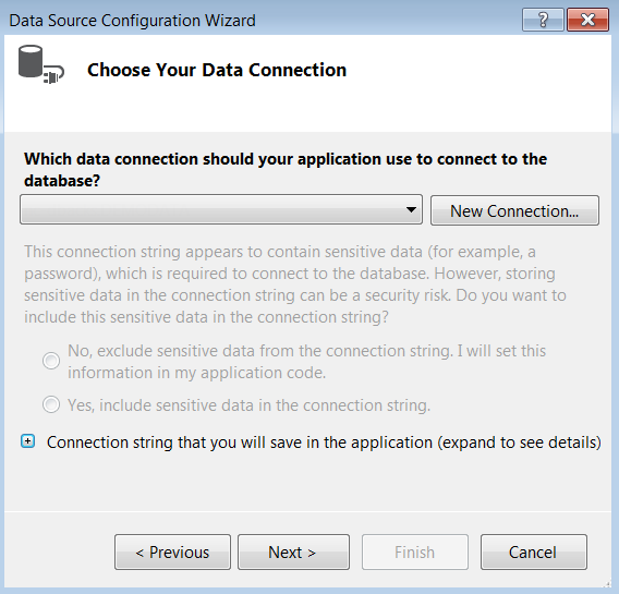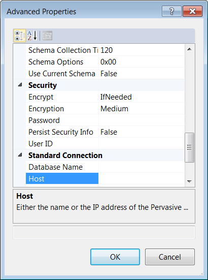 Persist Security Info: Select whether to display secure information in clear text in the ConnectionString property.