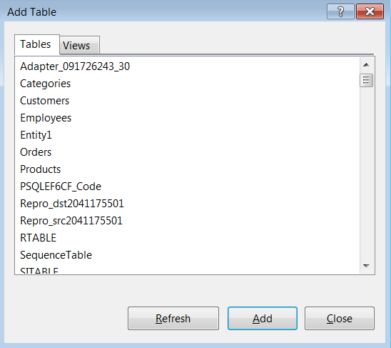The Add Table window appears. Select the table that contains the data that you want to use; then, click