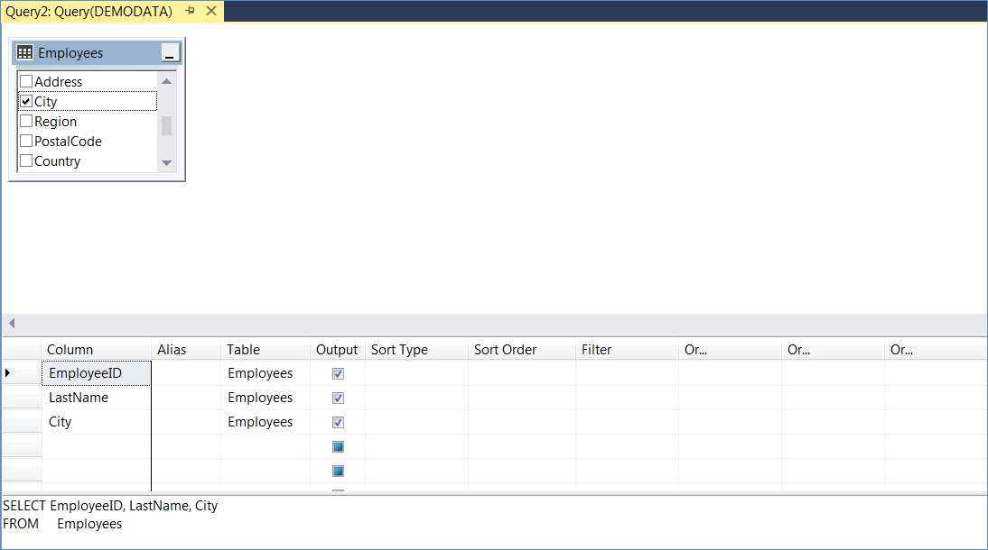 Because the PSQL data provider is integrated into Visual Studio, many typical data access tasks can be simplified. For example, after making the connection to the database, you can create queries using Query Builder.