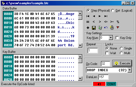 Lists all Btrieve operations and their codes. The default is Open (0). You can move quickly through the list by entering the first letter of the operation you want to perform.