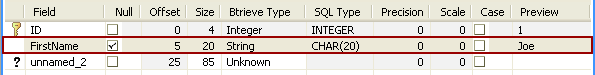 Select the Null checkbox so that the null indicator byte is reserved at the first of the record.
