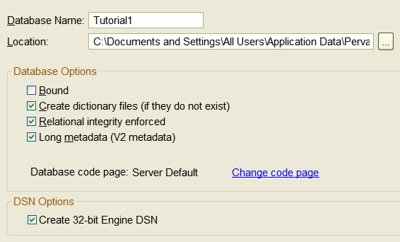 Click Finish to create the database and the empty DDF files in the location you specified.