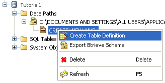 Right-click the CREATE_NEW.MKD folder containing the file, and select Create Table Definition.