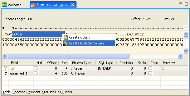 With DDF Builder still open, click the Preview tab in the Table Definition Editor.