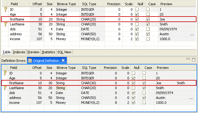 Double-click the overlap SQL table, or right-click and select Edit Table Definition.