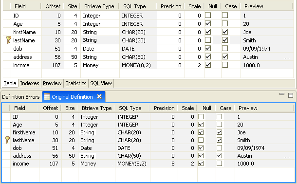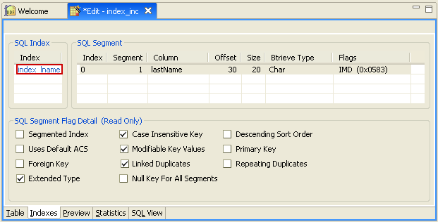 Select the Indexes tab in the Table Definition Editor.