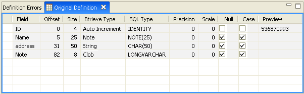 Click OK to clear the message and display the table definition.